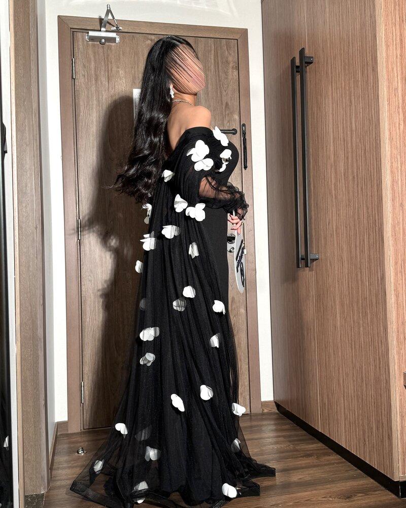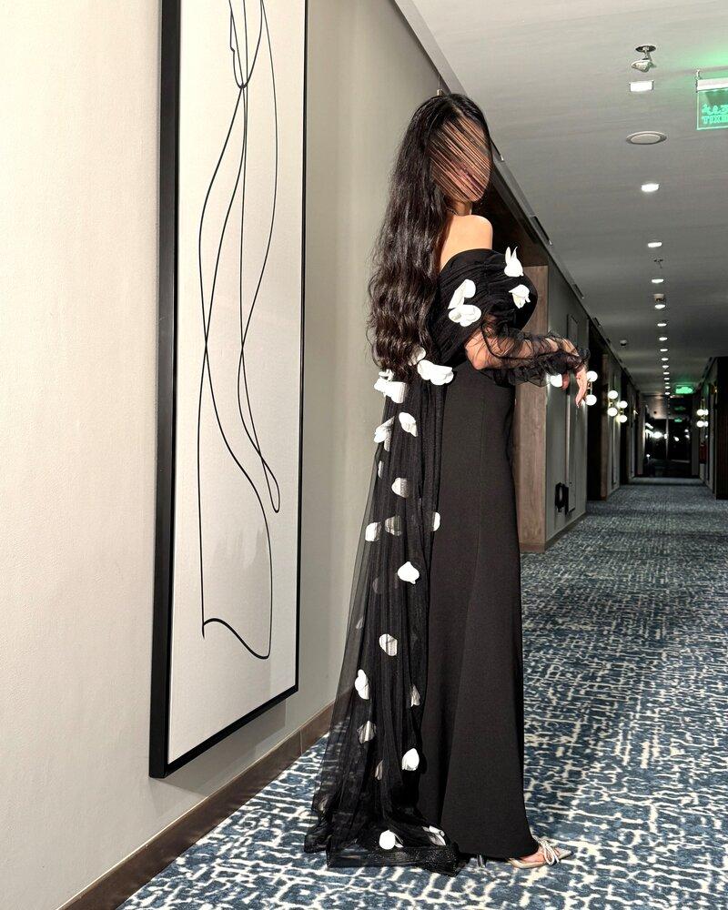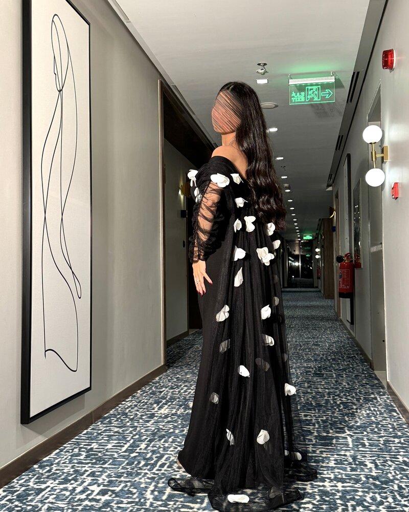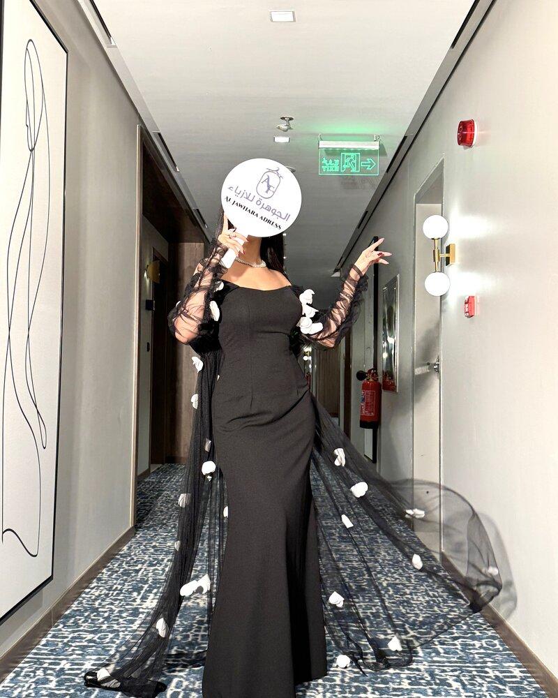 فستان سهرة بتفاصيل ورد انيقة
