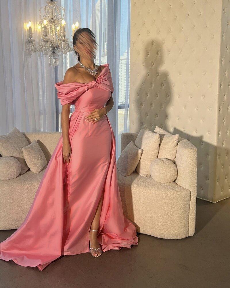 فستان شانتون وردي مميز للسهرات والمناسبات العائلية - متوفر بجميع المقاسات