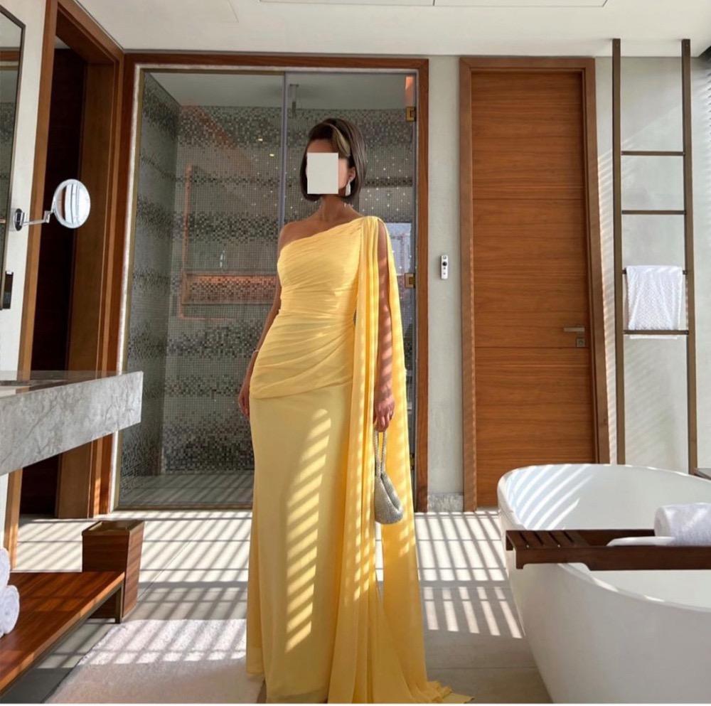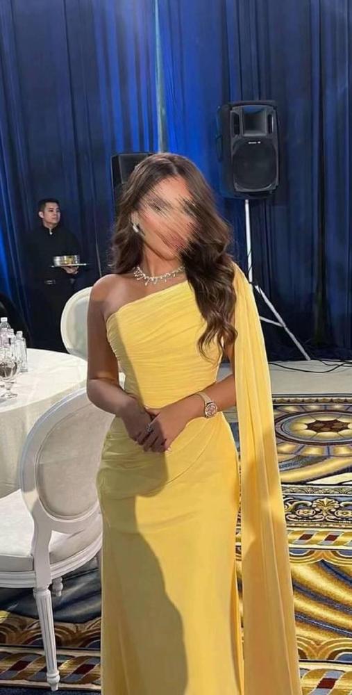 🌼 فستان أصفر بكتف واحد – أناقة وإشراقة