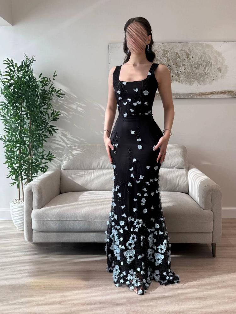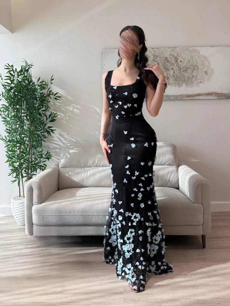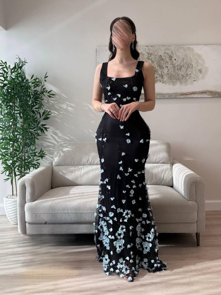 4. المظهر العام: الفستان مثالي للمناسبات الرسمية الكبرى والسهرات، ويجمع بين الأناقة الكلاسيكية لقصة حورية البحر واللمسة العصرية للتطريزات الزهرية البارزة.